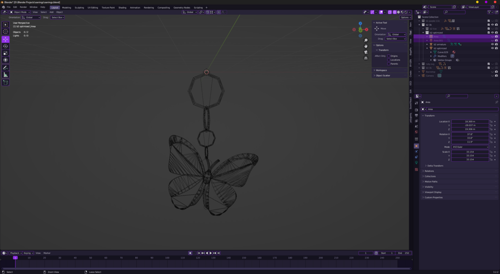 - The butterfly earring fbx (one side, 3 weight-painted bones, ~2600 tris)